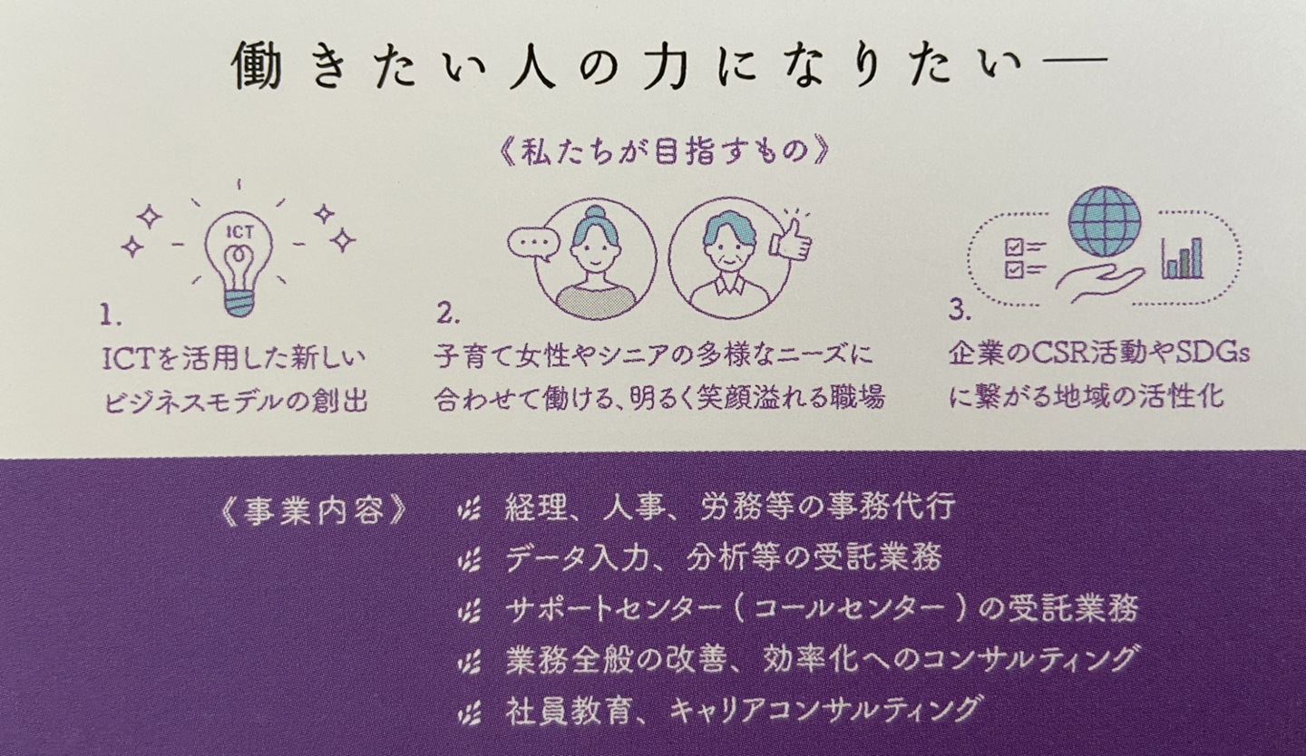2025年1月:東京 シナプス経営様との業務提携により、首都圏企業のBPO業務の請負開始 2025年7月:「官民連携DX女性活躍コンソーシアム」発足記念のシンポジウムに参加 2025年9月:社内向け定期研修会スタート 2025年11月:宗像市主催「女性のための将来設計セミナー」の講師として担当